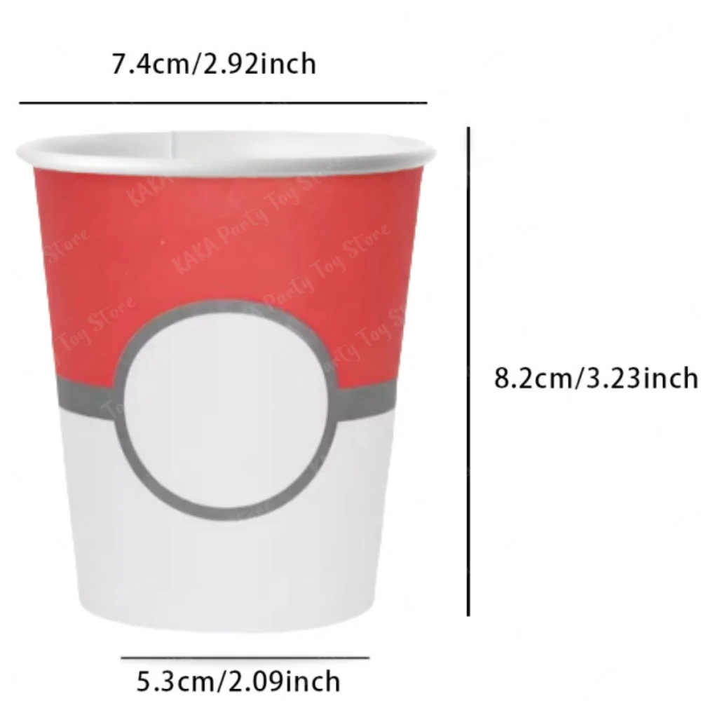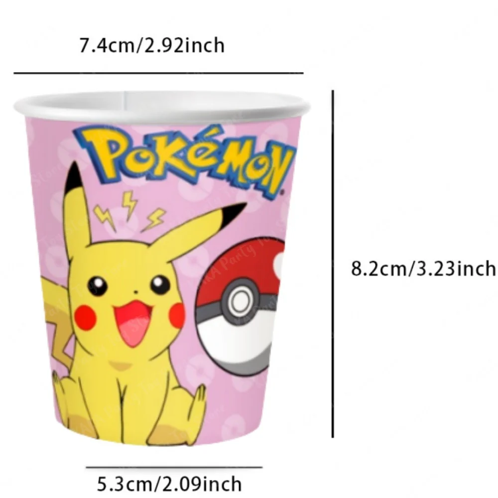 Pokemon Cups Cartoon Pikachu Pokeball Disposable Paper Drinking Cup For Baby Shower Kids Boys Girls Birthday Party Decorations Supplies